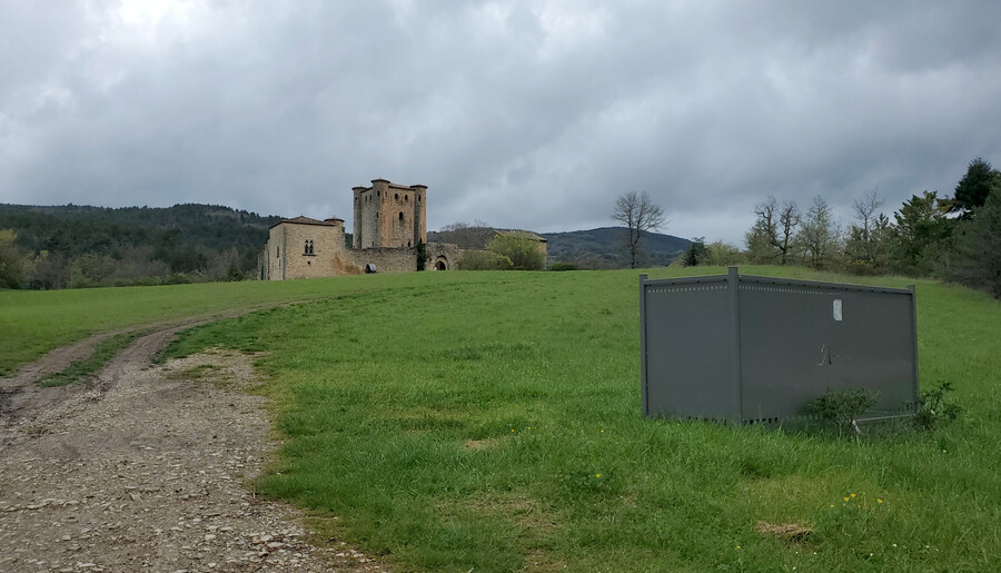 Ce matin, Françoise et Olivier ont décidé de rentrer. Nous ne serons donc que trois à rouler. La température est encore très basse et ne devrait pas trop monter dans la journée. Nous avons à peine quitté le camping qu’une pluie fine nous oblige à revêtir les pantalons de pluie. Finalement, ils nous tiendront un peu plus chaud. Nous traversons Rennes-les-Bains pour rejoindre la route de Couiza que nous prenons à droite vers Serres. Là, on peut voir le château à gauche, perché sur la colline. Sur la droite, dans le village, un vieux pont enjambe le Rialsesse. La pluie et le froid ne nous incitent pas à faire un arrêt. Nous continuons jusqu’à Arques en admirant le château au passage. Dans le village, nous prenons à gauche la route de Bouisse. Ça monte bien jusqu’à Franciman mais l’effort nous permet de garder un peu de chaleur. Plus on monte, plus la température baisse, atteignant bientôt 4°C. Après une partie un peu plus plate où les chiens des fermes nous poursuivent, nous rejoignons la D129 que nous prenons à droite pour la quitter un peu plus loin et prendre à gauche la route de Bouisse.