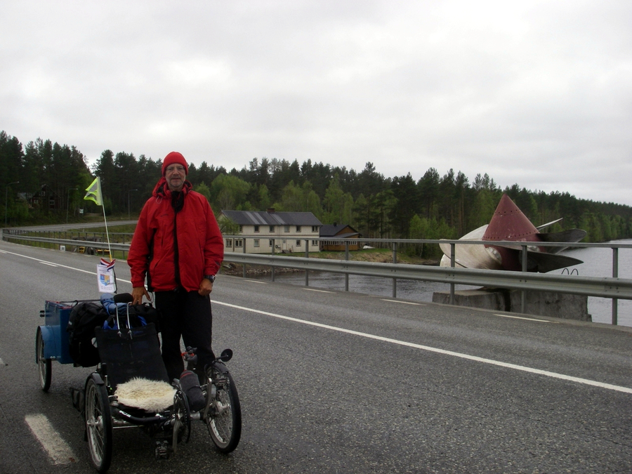 A la sortie de Langsele, j'ai pris une petite route qui m'évite un détour par Solleftea, car j'ai prévu de suivre la route 90. Une route parallèle existe de l'autre côté de la rivière et je tente ma chance de ce côté là. Mon choix n'est pas judicieux, d'une part parce qu'il n'y a quasiment pas de circulation sur la route 90, mais en plus, la petite route monte et descend dans les collines et finit par ne plus avoir de revêtement bitumé. Voilà qui me rappelle les mauvais souvenirs des deux derniers jours. D'autant que le temps se dégrade et qu'il commence à pleuvoir. Après Forsmo, je m'abrite sous un arbre pour grignoter un peu, mais la pluie n'est pas très forte, heureusement. Quand je repars, il ne tombe quasiment plus rien.