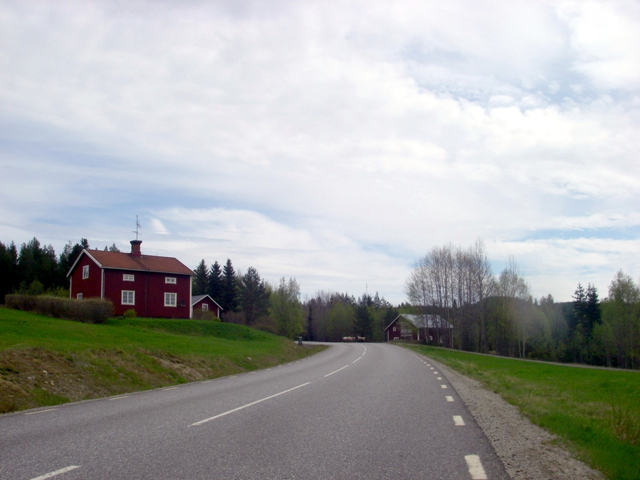 Après Lillögda, il y a une grande côte, puis la tendance générale s'inverse. Les pentes sont plus faibles, à part à quelques endroits où les montées sont bien prononcées, et surtout il y a quelques bonnes descentes où le vent du nord est plus fort que moi et me freine lamentablement. Dans l'après-midi, le ciel, qui s'était largement couvert en début de matinée, s'éclaircit de plus en plus. On a même l'impression que plus au nord il n'y a aucun nuage. C'est probablement le retour au beau temps annoncé par la météo pour le week-end à venir.
